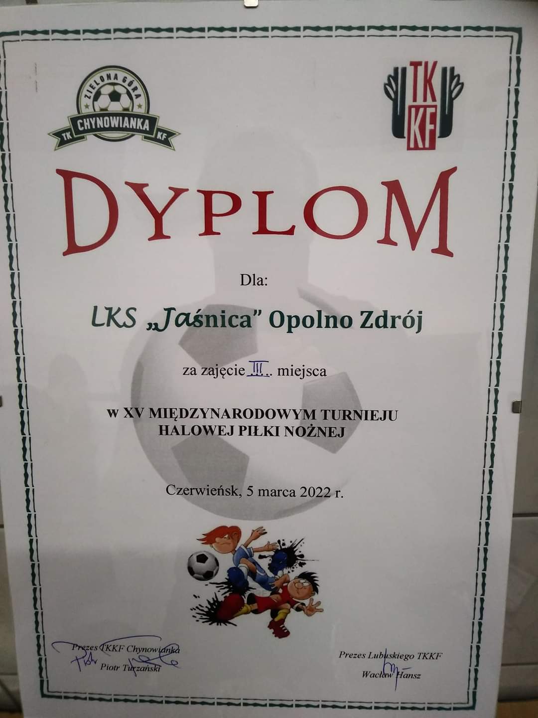 W sobotę, 05.03.2022 r. zespół z Opolna-Zdroju uczestniczył w XV Międzynarodowy Turnieju Halowej Piłki Nożnej w Czerwieńsku koło Zielonej Góry. W turnieju udział wzięły drużyny z Czech, Słowacji oraz Polski.