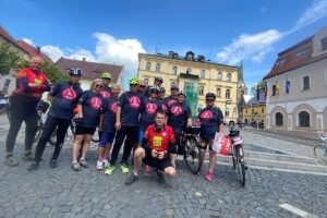 Na początku trasa zaskoczyła nas ostrym podjazdem do muzeum zegarów, gdzie na wąskim podjeździe zrobił sie tłok i grupa po prostu podeszła. Był to pierwszy sprawdzian naszych możliwości. Przy pięknej pogodzie i super widoczności pokonywaliśmy kolejne kilometry trasy podziwiając piękną panoramę gór po stronie niemieckiej. Po 13 km przekroczyliśmy granicę niemiecko-czeską podążając do Hradka nad Nysą.