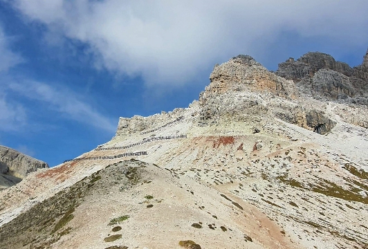 Następnego dnia wędrówkę rozpoczęliśmy od schroniska Locatelli Rifugio A. Locatelli alle Tre Cime di Lavaredo 2405 m n.p.m. Schronisko stanowi doskonały punkt widokowy, z którego widać północne ściany Tre Cime. Od schroniska podejście na Forcella Pian di Cengia 2522 m n.p.m. a następnie zeszliśmy do schroniska Lavaredo Rifugio Lavaredo 2344 m n.p.m. Powróciliśmy do schroniska Auronzo. Ścieżka pomiędzy schroniskami Lavaredo i Auronzo u stóp Spigolo Giallo i południowych ścian Tre Cime di Lavaredo jest jednym z najbardziej znanych w Dolomitach punktów widokowych na grupę Cadini di Misurina. Nie mogliśmy oderwać wzroku od tych niesamowitych szczytów. Pasmo górskie Trigine to masyw, wyrzeźbiony przez matkę naturę, która zrobiła to idealnie w każdym calu. Po kilkugodzinnej wędrówce, odpoczynku w kilku schroniskach górskich, które pojawiały się jak grzyby po deszczu powróciliśmy do miejsca zakwaterowania.