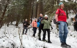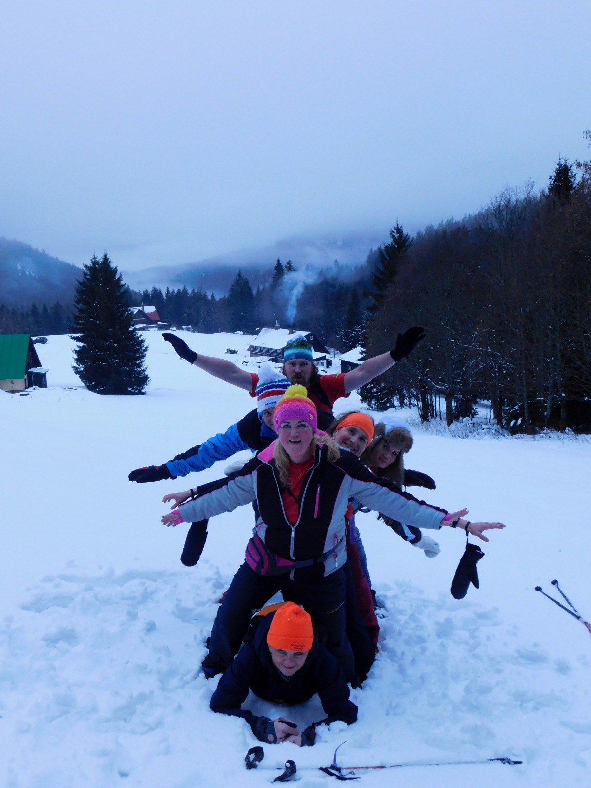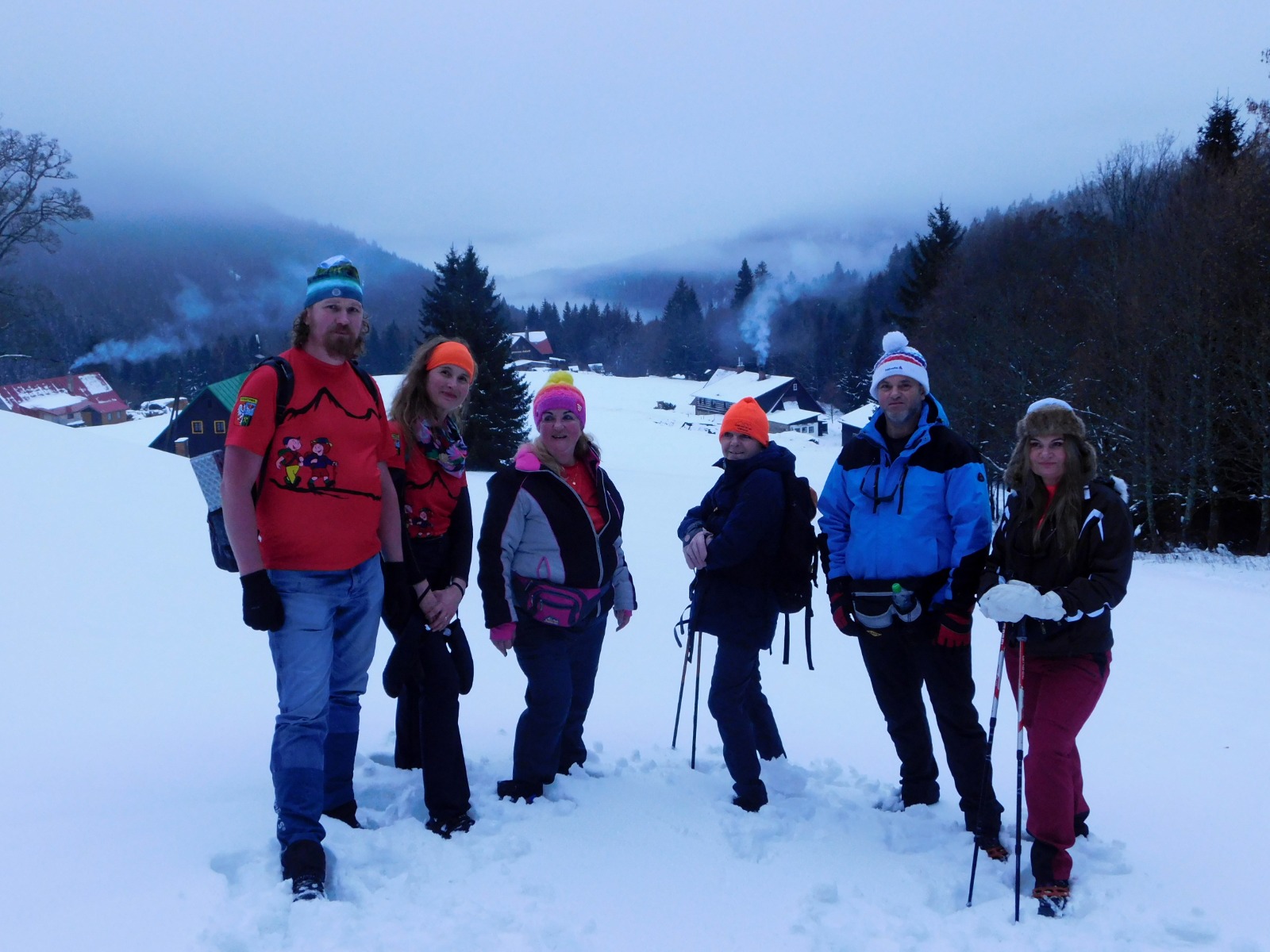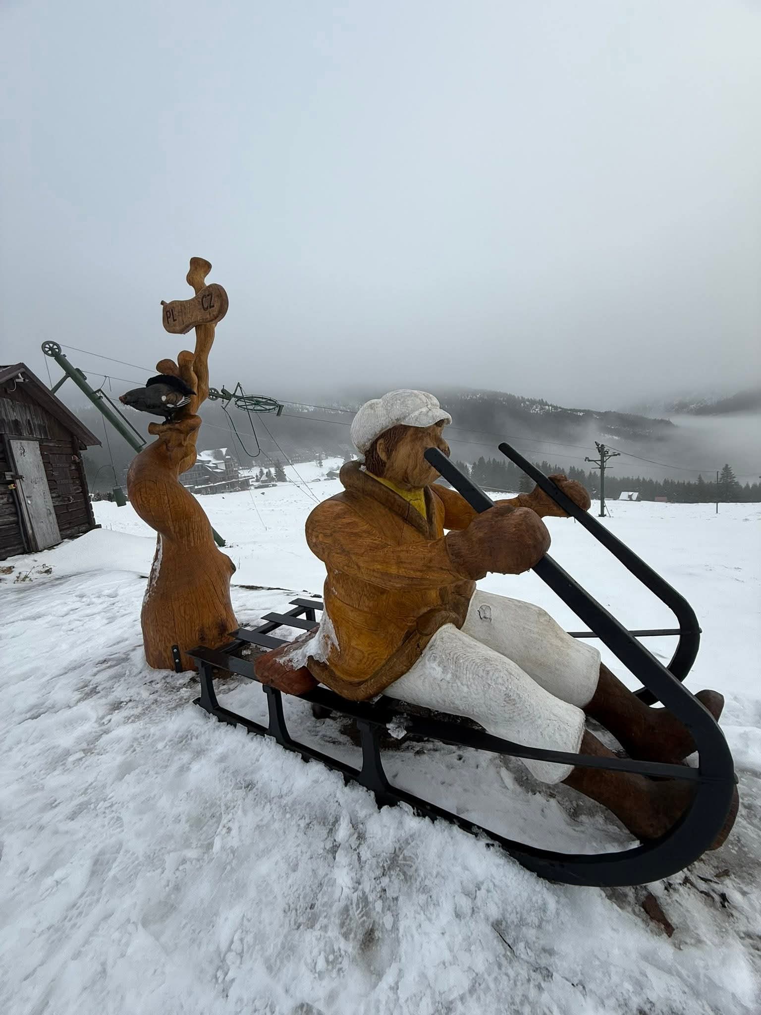 Niedzielny poranek powitał nas najpierw mgłą, a później piękną słoneczną pogodą i prawdziwie zimowym krajobrazem Karkonoszy. Po śniadaniu ruszyliśmy czerwonym szlakiem – Głównym Szlakiem Sudeckim, prowadzącym malowniczym grzbietem gór. Wspaniałe panoramy towarzyszyły nam przez całą drogę. Szczególne wrażenie zrobiły Śnieżne Kotły – monumentalne, polodowcowe ściany w zimowej szacie, które przypominały prawdziwą górską katedrę. Dalej przeszliśmy trasą zimową do Schroniska pod Łabskim Szczytem, skąd rozpoczęliśmy zejście do Szklarskiej Poręby. Śnieg, słońce i widoki sprawiły, że wędrówka była czystą przyjemnością.
