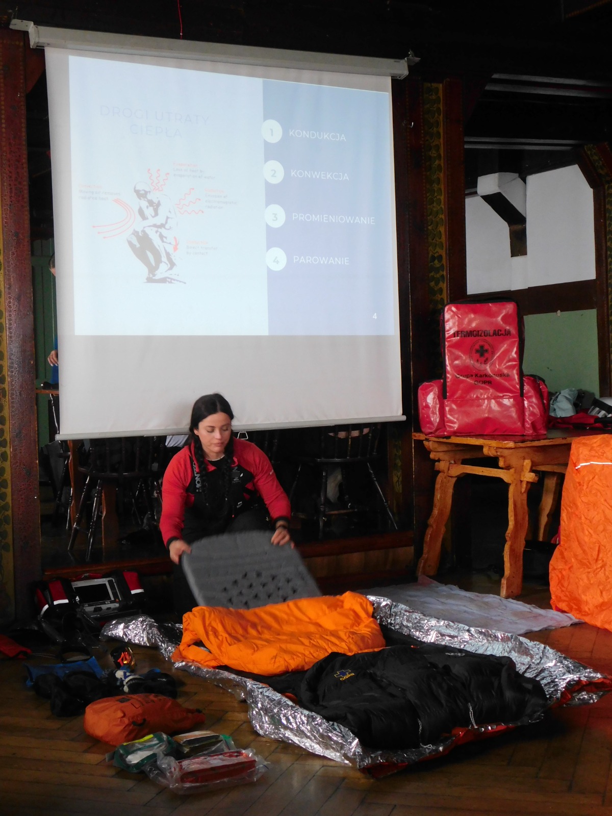 Jednym z najważniejszych elementów naszego wyjazdu były warsztaty lawinowe im. „Sokoła” (Andrzeja Sokołowskiego) w schronisku „Strzecha Akademicka” koło Karpacza. To szkolenie uświadamia, jak ogromne znaczenie ma wiedza, refleks i właściwa kolejność działań w sytuacjach ekstremalnych. Część teoretyczna pozwoliła zrozumieć mechanizmy powstawania lawin oraz zasady bezpieczeństwa w górach zimą, jednak to ćwiczenia praktyczne okazały się najcenniejsze.