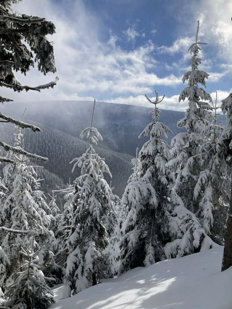 Wieczór spędziliśmy w schronisku Samotnia, gdzie w radosnej atmosferze świętowaliśmy Walentynki, dzieląc się wspomnieniami i planami kolejnych wypraw. Następnego dnia wyruszyliśmy w dalszą drogę w kierunku Luční bouda, a następnie czerwonym szlakiem do Špindlerůvego Mlýnu.