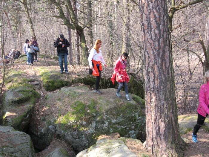 Kolejnym celem naszej wycieczki był Lwówek Śląski, a konkretnie skałki „Szwajcaria Lwówecka”. To największe poza Górami Stołowymi zgrupowanie piaskowcowych form skalnych. Znajdują się przy drodze wyjazdowej w stronę Jeleniej Góry na wysokości 250-300 m n.p.m. Tworzą ją ciekawe formy skalne oraz malownicze labirynty z urwiskami dochodzącymi do wysokości 30 m. Krajobraz taki powstał w wyniku intensywnego wietrzenia mrozowego czerwonych piaskowców triasowych oraz szarych piaskowców kredowych. Z tarasu widokowego podziwiać można Pogórze Sudeckie i wijącą się pomiędzy wzgórzami rzekę Bóbr. Dużym udogodnieniem w ich zwiedzaniu jest ścieżka edukacyjna z tablicami z których to dowiedzieliśmy się, że „Szwajcaria Lwówecka” znajduje się na terenie Parku Krajobrazowego Doliny Bobru. Naszym Przewodnikiem po skałkach oraz po Lwówku Śląskim była nasza koleżanka Ania, mieszkanka tego miasta. Po takich atrakcjach głodni i zmęczeni udaliśmy się na obiad do restauracji „Pod Czarnym Krukiem”, gdzie miłe kierownictwo oraz obsługa ugościli nas pysznym obiadkiem (makaron własnej roboty) - polecamy!