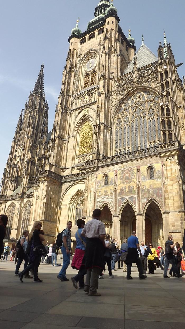 Kolejnym obiektem przez nas zwiedzanym była Katedra Św. Wita . To gotycka katedra, której budowę rozpoczęto w 1344 r. w miejscu romańskiej rotundy Św. Wita. Wykonanie zlecił Jan Luksemburski wraz ze swoimi synami – Karolem oraz Janem Henrykiem, wznoszono ją prawie sześćset lat. Jest to symbol duchowy narodu czeskiego i miejsce, w którym spoczywają najwięksi władcy w historii Czech. Wewnątrz zgromadzono cenne czeskie klejnoty koronacyjne. Stamtąd udaliśmy się na plac Loretański, na którym zbudowano w 1626 roku kościół Matki Boskiej z Loreto - barokowe sanktuarium. Centralnym elementem kompleksu jest domek loretański wzniesiony z kamieni pochodzących z Nazaretu. W skarbcu znajduje się „Słońce Pragi”- olśniewająca złota monstrancja wysadzana 6222 diamentami.