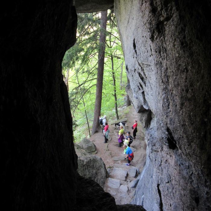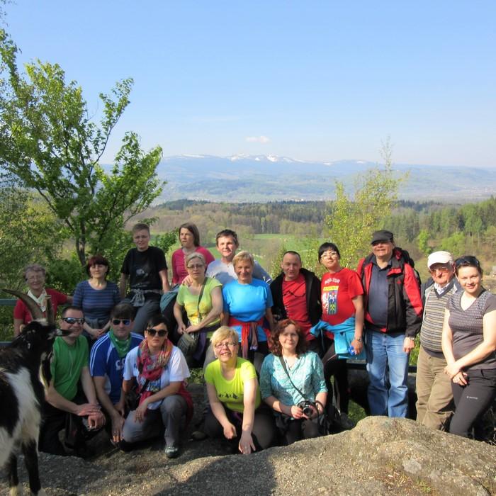W trzecim dniu wyprawy, wędrowanie rozpoczęliśmy od zwiedzenia Góry Witosza 484 m n.p.m., którą oglądaliśmy codziennie z okien schroniska. Jest to wzniesienie Wzgórz Łomnickich skąd roztacza się przepiękny widok na Kotlinę Jeleniogórską i Karkonosze. Na szczyt prowadzą kamienne schody, tu zachowały się pozostałości cokołu, na którym stał kiedyś pomnik Otto von Bismarcka. Zbocza usiane są licznymi granitowymi formami skalnymi, które dzięki procesom wietrzeniowym przybrały rozmaite kształty m.in. Skalna Komora, Ucho Igielne, Pustelnia, Skalna Uliczka. Przewodnik opowiedział nam też ciekawą historię o Pustelniku, od którego to imienia nazwaną tą górę. Z pod schroniska autobusem pojechaliśmy do Starej Białki skąd ruszyliśmy czerwonym szlakiem, malowniczymi terenami Rudawskiego Parku Krajobrazowego na szczyt Zadzierna 724 m n.p.m. Zdobyliśmy kolejny punkt do książeczki Sudecki Włóczykij. Dalej powędrowaliśmy do Lubawki i po przerwie obiadowej poszliśmy dalej podziwiając po drodze ładnie odnowiony rynek otoczony sukiennicami. Trasa powiodła nas do Betlejem - jest to założenie nawiązujące ideowo do miejsca narodzin Chrystusa w Ziemi Świętej, umiejscowione 2 km od Klasztoru Cystersów w Krzeszowie. Z powodu braku czasu postanowiliśmy to miejsce, a także Opactwo Cystersów w Krzeszowie zwiedzić na następnym rajdzie. Tutaj zakończyliśmy ten etap rajdu Szlakiem Orłowicza. Bogatsi o zdobyte szczyty oraz punkty do odznak turystycznych, spotkamy się w czerwcu.