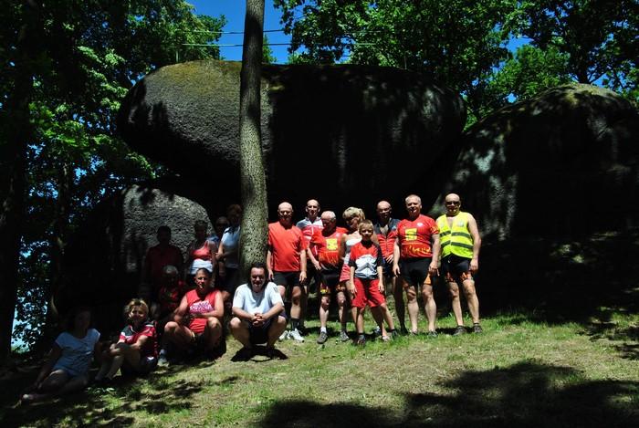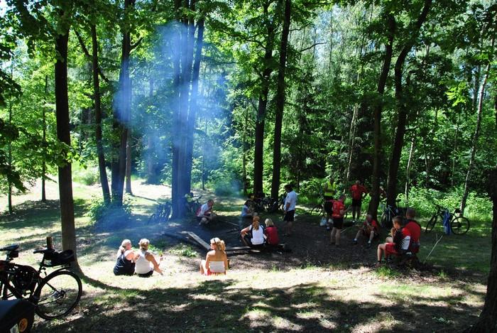 Wyjazd pierwszej grupy o godzinie 09:00, jako iż do przejechania ok. 55 km, jedziemy przez Opolno-Zdrój dalej Sieniawka, Zittau następnie, wyremontowaną ścieżką rowerową do klasztoru Marienthal w Ostritz, gdzie zrobiliśmy krótki postój. Wracamy do Polski przez Krzewinę dalej Lutogniewice i do Czech, czyli Andelka tam podjechaliśmy do kamienia, który oznacza przecięcie się 15 południka z 51 równoleżnikiem (czas środkowo europejski) i przez Saň do Višňovej na „Pogańskie Kamienie” aby wspólnie z drugą grupą, piec kiełbaski na ognisku.