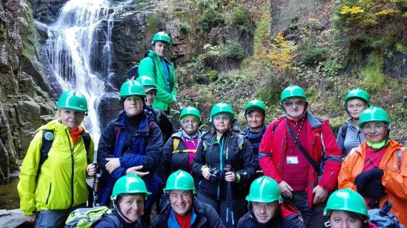 Wędrówkę rozpoczęliśmy na stacji kolejowej w Szklarskiej Porębie Górnej. Wyruszyliśmy w kierunku Wodospadu Kamieńczyka pod Szrenicą. Zatrzymaliśmy się na chwilę, aby wysłuchać ciekawych informacji na temat wodospadu i przyjrzeć mu się z bliska.