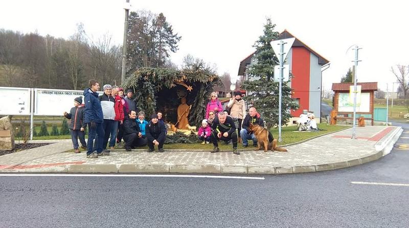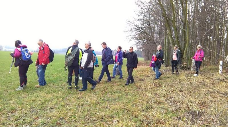 Na drugą wycieczkę pieszą z cyklu „Poznajmy swoją okolicę” wybraliśmy się do Heřmanic. Naszym celem było poznanie ciekawych miejsc w okolicy wsi znad wspólnej rzeki Oleški-Miedzianki. Wyruszyliśmy godzinę przed południem 19 grudnia br. grupą osiemnastu osób (z trojgiem dzieci). Przeszliśmy z Bogatyni w kierunku granicy państwowej, potem ścieżką przez las do nieczynnej kopalni bazaltu na północnym skraju Heřmanic. Wydobycie rozpoczęto w niej z początkiem XX wieku, a zrezygnowano z niego w czerwcu 1989 roku. Na ścianach kamieniołomu dobrze są widoczne słupy bazaltowej magmy, ułożone w kształcie wachlarza. Wyrobisko po opuszczeniu przez górników, stało się siedliskiem wielu objętych ochroną gatunków drobnej fauny i roślin.