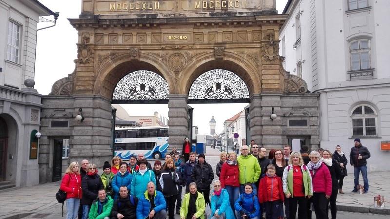 Po wspólnej fotografii pamiątkowej przed zabytkową bramą browaru, odjechaliśmy w kierunku zamku Orlík, odległego o około 70 km.