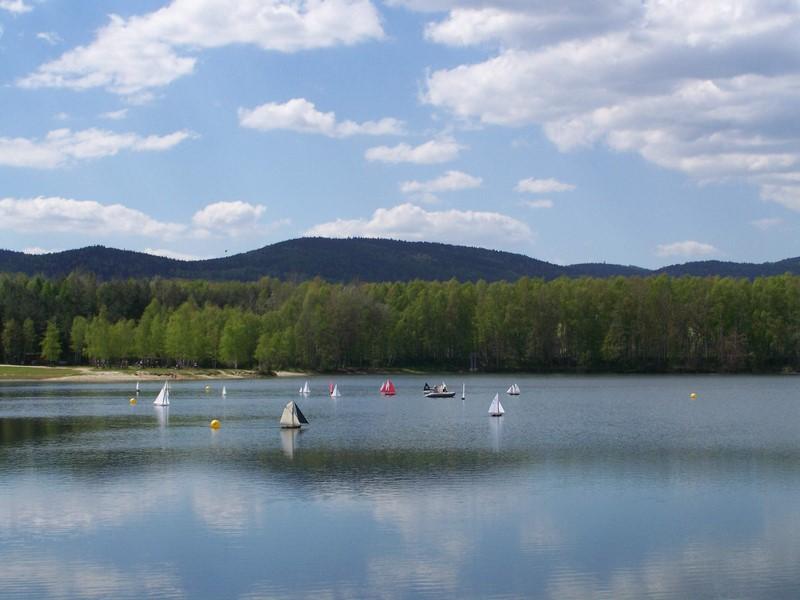 W drodze powrotnej do Bogatyni, kilka podjazdów o spadku min 10%, jedziemy na akwen Kristina w Czeskim Hradku gdzie odbywają się międzynarodowe zawody modeli pływających oraz wystawa modeli militarnych. Na rondzie w Hradku, przymusowy postój, przejazd kawalkady czeskich motocyklistów, nawzajem pozdrawiamy się, po około 10 minutach, jeden z motocyklistów zlitował się nad oczekującymi na przejazd (korek pojazdów długaśny) i zatrzymał motocyklistów, wstępnie policzyliśmy że przejechało ponad 1000 jednośladów a końca nie było widać. Spokojnie szutrowymi drogami przez czeskie bezdroża dojechaliśmy do Opola-Zdroju i już Bogatynia.