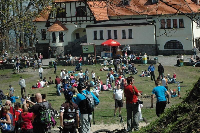 Zapierającą dech w piersiach wędrówkę pośród dębów, buków, traw i kwiatów rozpoczęliśmy szlakiem do tzw. zamku w Sobótce-Górce. Dzisiejszy pałac powstał jako kaplica dla zakonu augustianów osadzonych w Sobótce w XII stuleciu. Rozbudowany do rozmiarów klasztoru przechodził rozmaite koleje losu. Dziś, wciąż przechodząc gruntowną rewitalizację, pełni rolę hotelu i restauracji. Po obejrzeniu całego założenia pałacowego niebieskim i czerwonym szlakiem dotarliśmy na Ślężę (718 m n.p.m.). Śląski Olimp to najwyższa góra Masywu Ślęży. Majestatyczna, wyrastająca kilkaset metrów ponad okolicę święta góra musiała od zarania ludzkości wywierać ogromne wrażenie. Już prahistoryczne ludy obrały ją za miejsce kultowe. O tutejszych pogańskich rzeźbach i kamiennym kręgu możecie wyczytać w wielu przewodnikach. Na rozległym wierzchołku czekały nas piękne widoki i tłumy wypoczywających przy ogniu i kiełbaskach turystów, chwytających promienie majowego słońca. I my postanowiliśmy zadbać o żołądki w miejscowym schronisku. Niestety nie wyszło. Zimnej zupy podanej w jednorazowych naczyniach (!) nie polecamy. Po osobliwym posiłku udaliśmy się do posadowionego na szczycie kościoła aby chociaż pokrzepić ducha. Kościół na Ślęży zbudowany został w XII wieku przez Bolesława III, po sprowadzeniu do Sobótki augustianów. Malutka świątynia pod wezwaniem Najświętszej Marii Panny przechodzi od kilku lat gruntowną renowację.