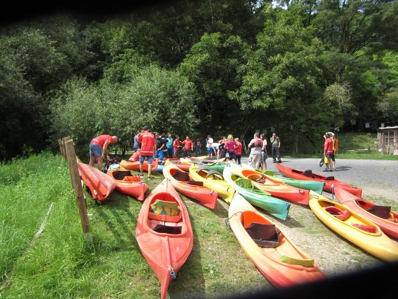 Po włożeniu kapoków i zajęciu miejsc w kajakach, ruszyliśmy spod wypożyczalni p. Rudka Kuczyca w kierunku morza ;-). Jeden za drugim, wszyscy za komandorem, wartkim nurtem. Po ulewie poprzedniego dnia poziom rzeki sięgnął powyżej metra. Co nam sprzyjało, bo nie było ryzyka ocierania dnem kajaka o podwodne przeszkody.