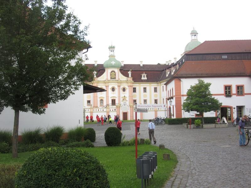 Po przepłynięciu bezpiecznie około 17 km, we wyśmienitych humorach dotarliśmy do mety naszego spływu. W ostrzyckim klasztorze St. Marienthal pożegnaliśmy się z organizatorem spływu i poszliśmy na spacer po cysterskim założeniu. Opactwo założone w 1234 roku przez Kunegundę z królewskiego rodu Hohenstaufów, istnieje nieprzerwanie do dziś. Większość z nas była tu już nie raz, ale za każdym razem „Maryjny Dół” zachwyca nas swym pięknem. Budynek konwentu z wieżową budowlą środkową, kościół klasztorny, kaplica św. Krzyża i św. Michała, filar Trójcy oraz statua św. Nepomucena wywierają silne wrażenie. Akurat podczas naszego pobytu odbywał się niezwykle ciekawy pokaz tresury ptaków.