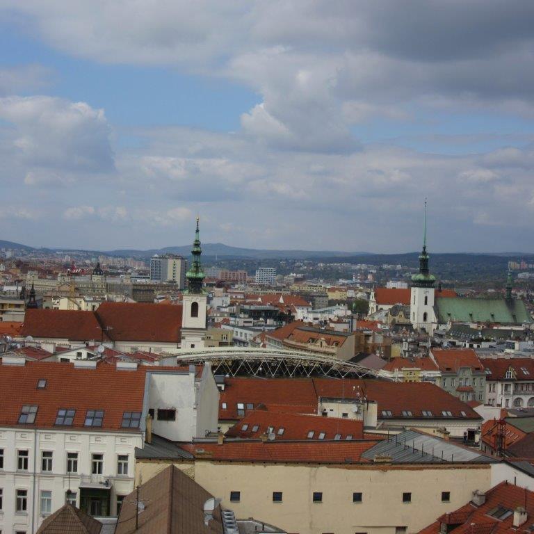 Następnie powędrowaliśmy na wzgórze Petrov, do katedry św. św. Piotra i Pawła. Z wieży podziwialiśmy wspaniały widok na miasto. Chodząc urokliwymi uliczkami Brna zwiedziliśmy kościół św. Jakuba, teatr Mahena (Mahenovo divadlo), Stary Ratusz z podwieszonym przy suficie brneńskim smokiem, Stary Rynek z Domem pod Czterema Gburami, Targ Zielony...
