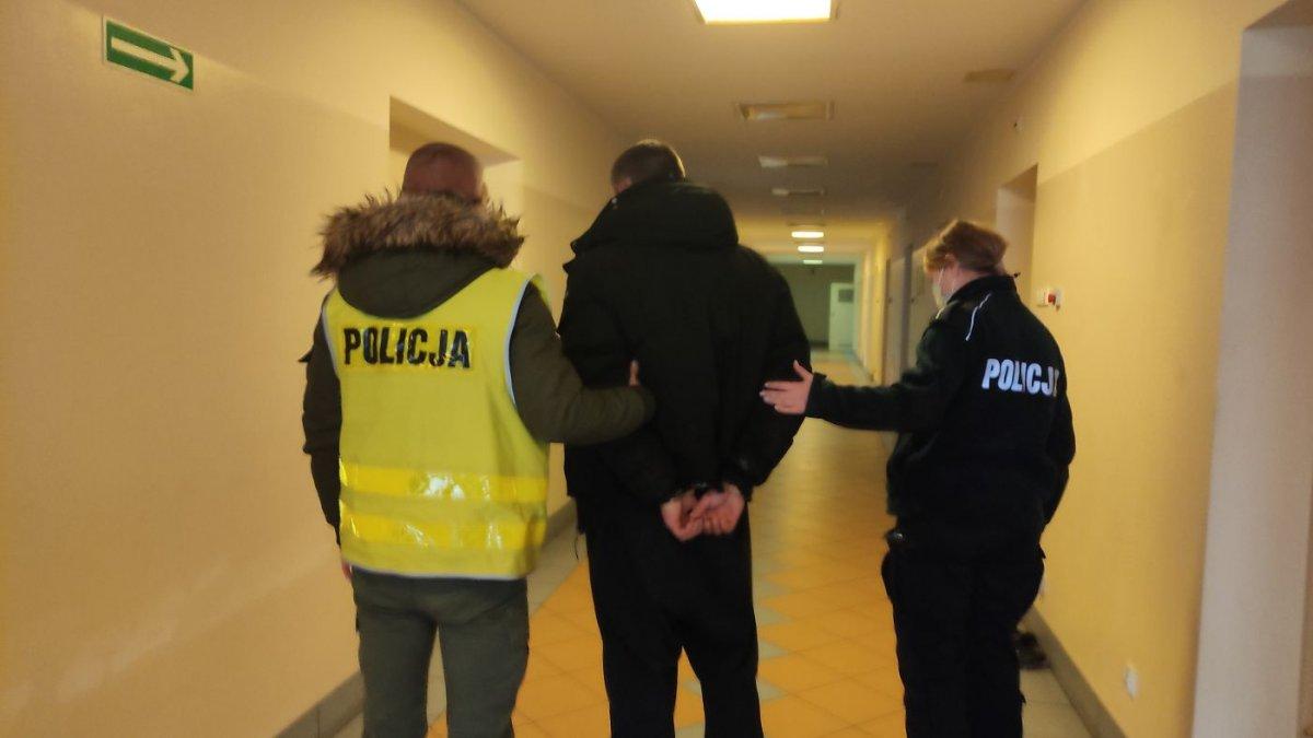 Na zdjęciu policjanci prowadzą zatrzymanego, fot. KPP w Zgorzelcu
