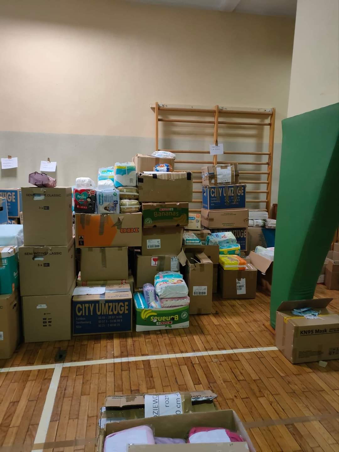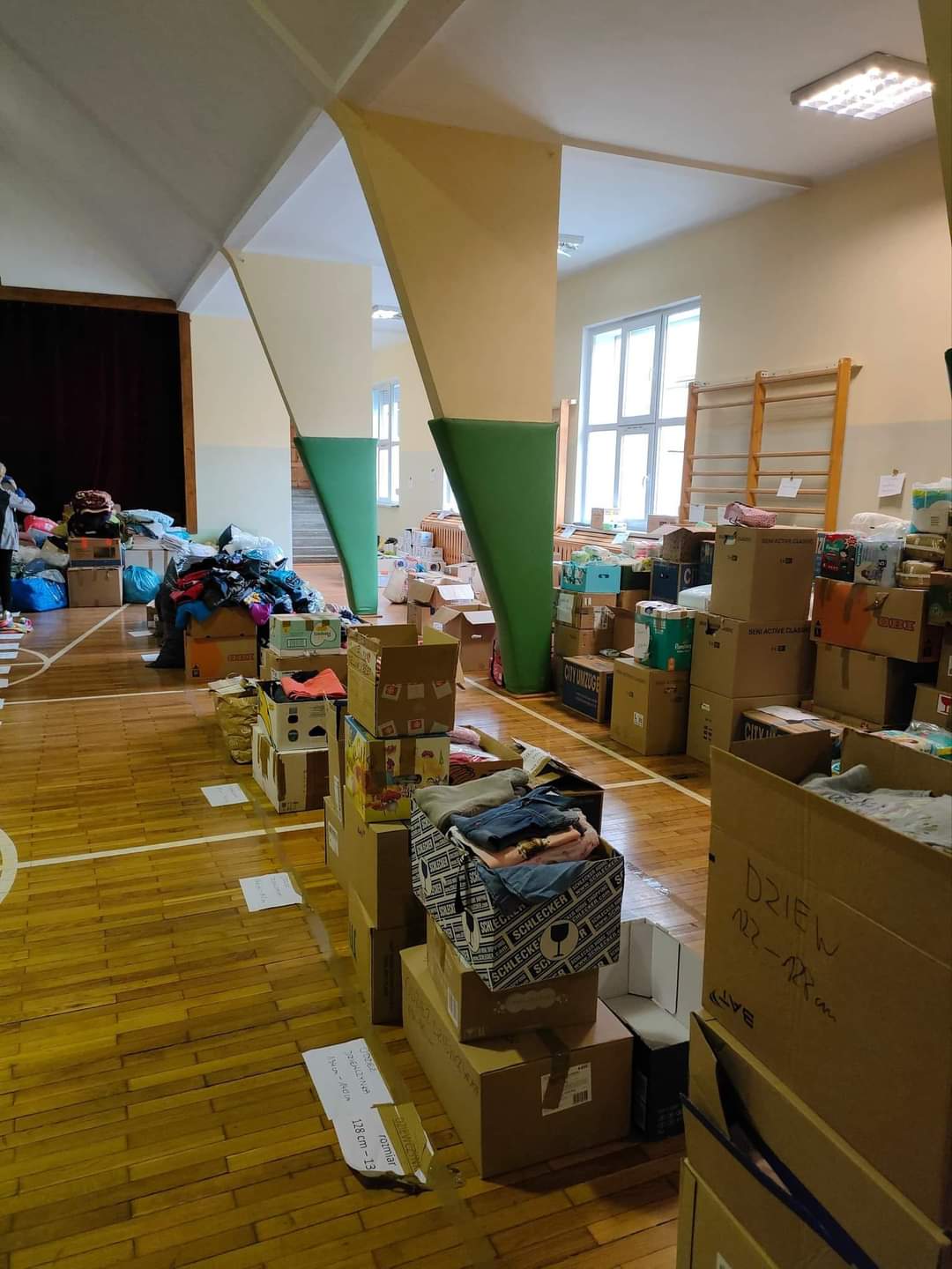 - (...) Od kilku dni w naszej sali gimnastycznej mieści się punkt zbiórki darów dla ukraińskich rodzin przebywających w Bogatyni. Liczymy na wasze wsparcie. Obecnie potrzebne są: produkty do higieny osobistej, chemia gospodarcza, pieluchy dla dzieci, produkty spożywcze z długim terminem ważności, mile widziane słodycze dla dzieci oraz NOWE: koce, pościel, bielizna dla dorosłych i dzieci - informuje LO w Bogatyni.