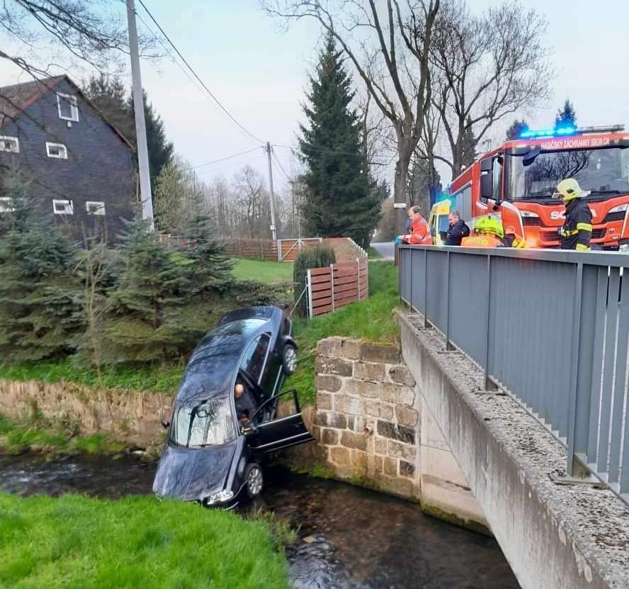 Dziś po godzinie szóstej rano strażacy pojechali do wsi Krásný Les obok Frydlantu, do wypadku drogowego z udziałem samochodu, który zjechał z mostu do strumienia.