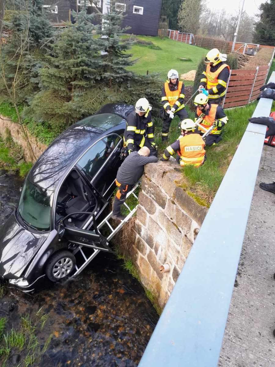 Przy pomocy regulowanych drabinek uratowali kierowcę, który został przekazany ratownikom medycznym. Po wyciągnięciu pojazdu z wody przy pomocy samochodu ratowniczo-gaśniczego strażacy zabezpieczyli niewielki wyciek płynów eksploatacyjnych. Na miejscu interweniowali zawodowi strażacy z Kraju Libereckiego – stacja Raspenava oraz strażacy ochotnicy z Frydlantu.
