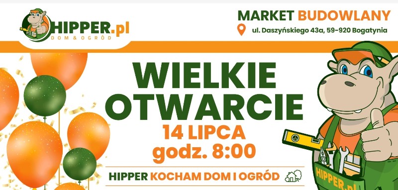 Sieć podkreśla, że lubi hucznie obchodzić otwarcia swoich sklepów, dlatego wielkie otwarcie marketu HIPPER.pl w Bogatyni będzie trwało całe dwa dni – 14 i 15 lipca. Sklep warto odwiedzić już podczas otwarcia, ponieważ na odwiedzających klientów czekają wyjątkowe konkursy i atrakcje: