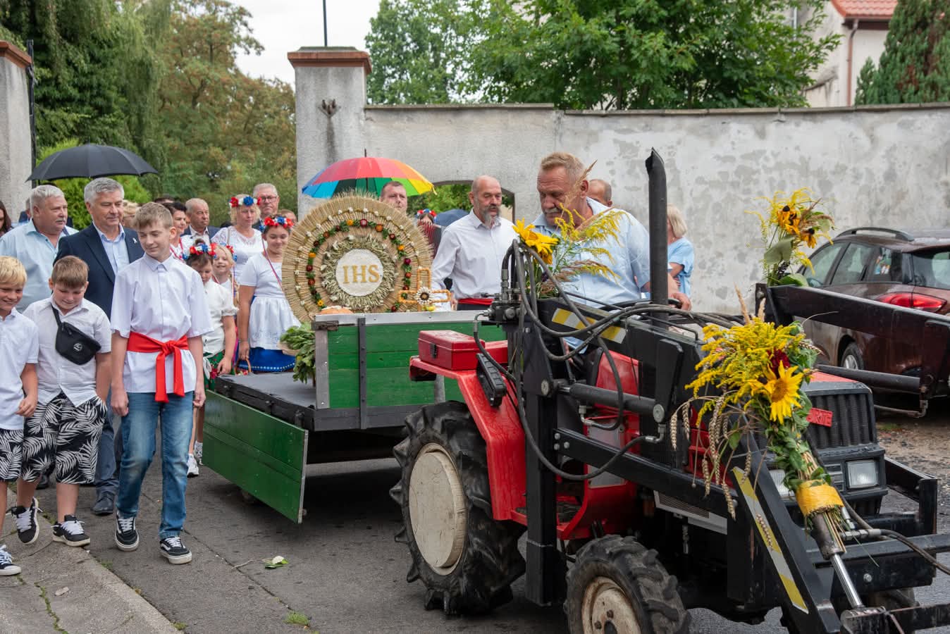 „Chleb, który jemy każdego dnia, to symbol wysiłku rolnika i dowód na to, jak ważny jest szacunek dla ziemi i jej darów. Dlatego w dożynki kłaniamy się nisko wszystkim, którzy swoją pracą dają nam ten podstawowy pokarm” – powiedział burmistrz, po czym tradycyjnie podzielił dożynkowy bochen chleba między uczestników.