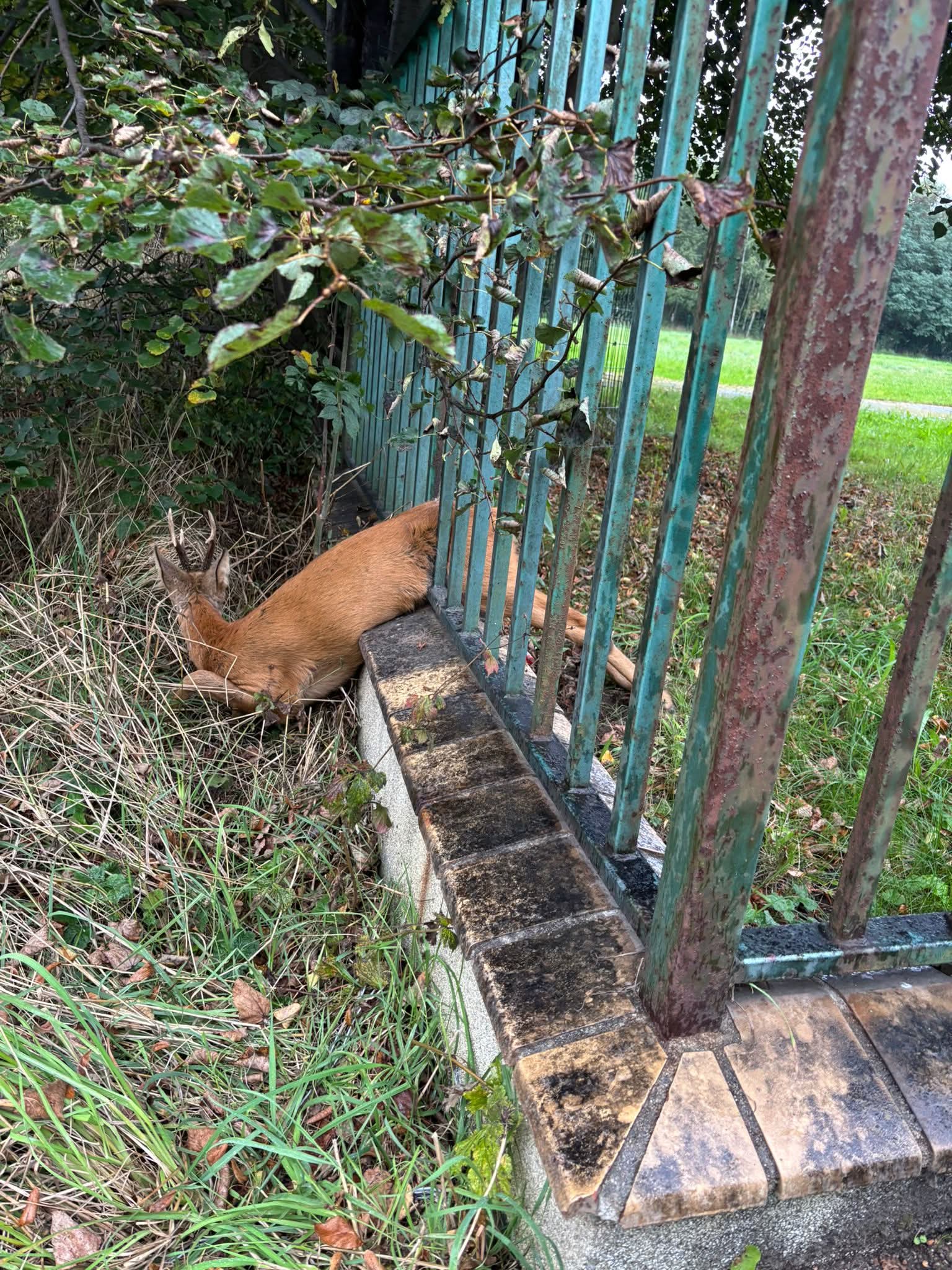 Na miejsce natychmiast zadysponowano patrol. Po przybyciu na miejsce, funkcjonariusze potwierdzili zgłoszenie. W ogrodzeniu, między metalowymi prętami, utknęło przerażone, młode koźlę. Zwierzę najprawdopodobniej próbowało przecisnąć się między prętami i w ten sposób utknęło. Było wystraszone, ale dzięki profesjonalnemu i spokojnemu podejściu strażników, udało się uwolnić je z pułapki.