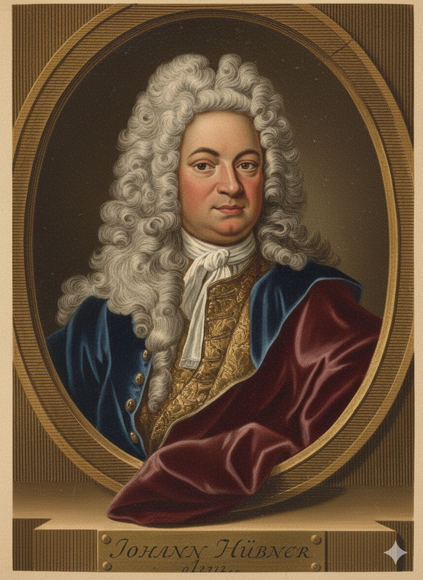 Johann Hübner, uwspółcześniona wersja portretu z epoki, grafika komputerowa