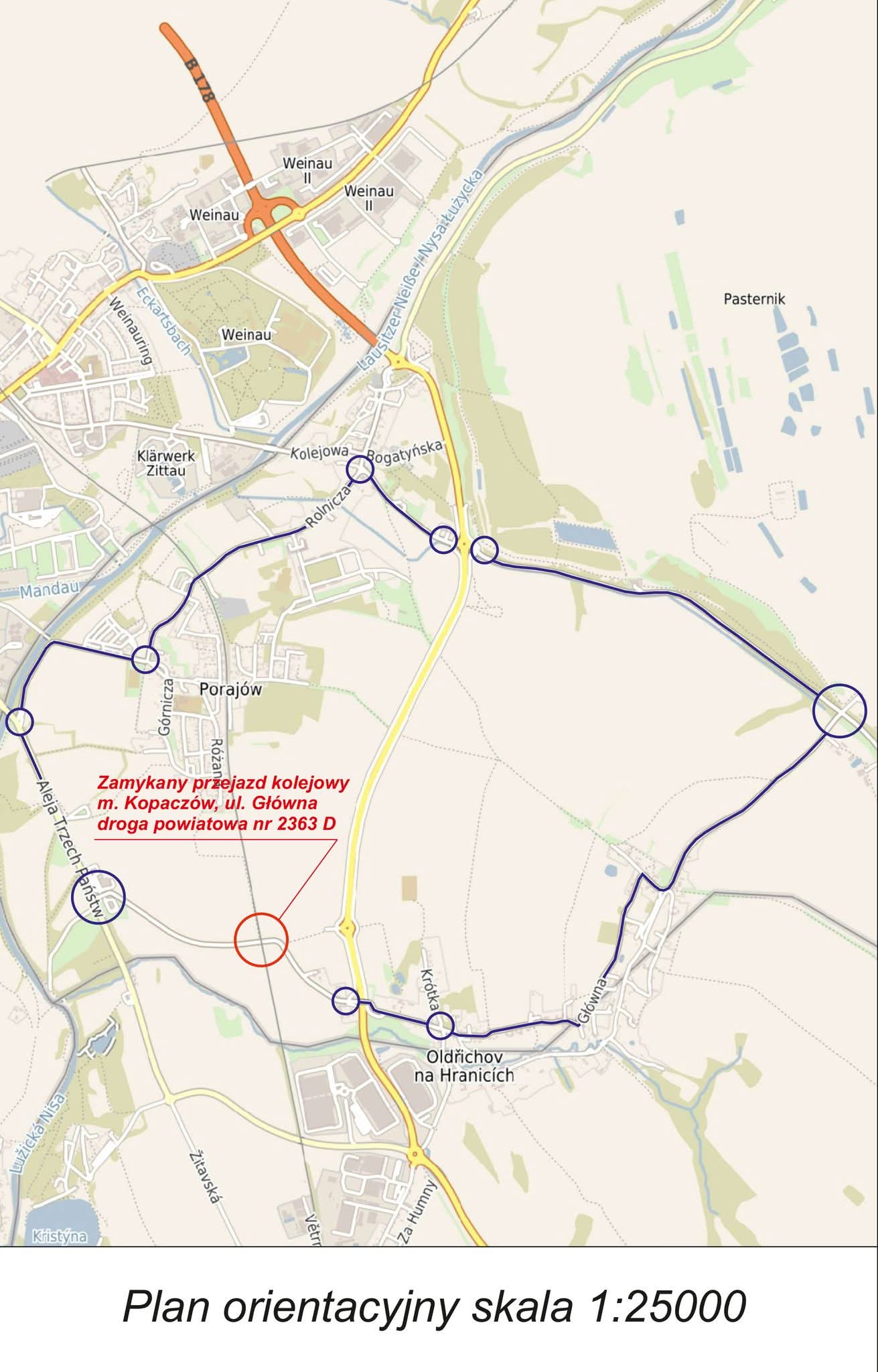 W przyszłym tygodniu kierowcy poruszający się po ulicy Głównej w Kopaczowie muszą liczyć się ze sporymi utrudnieniami. W dniach od 22 do 26 września 2025 roku zamknięty zostanie przejazd kolejowo-drogowy w km 22,313, co jest związane z jego modernizacją. Prace, prowadzone na zlecenie PKP Polskie Linie Kolejowe S.A. Zakład Linii Kolejowych w Wałbrzychu, obejmują przejazd zlokalizowany w ciągu drogi powiatowej nr 2363 D, na linii kolejowej nr 346, która łączy Liberec i Zittau.