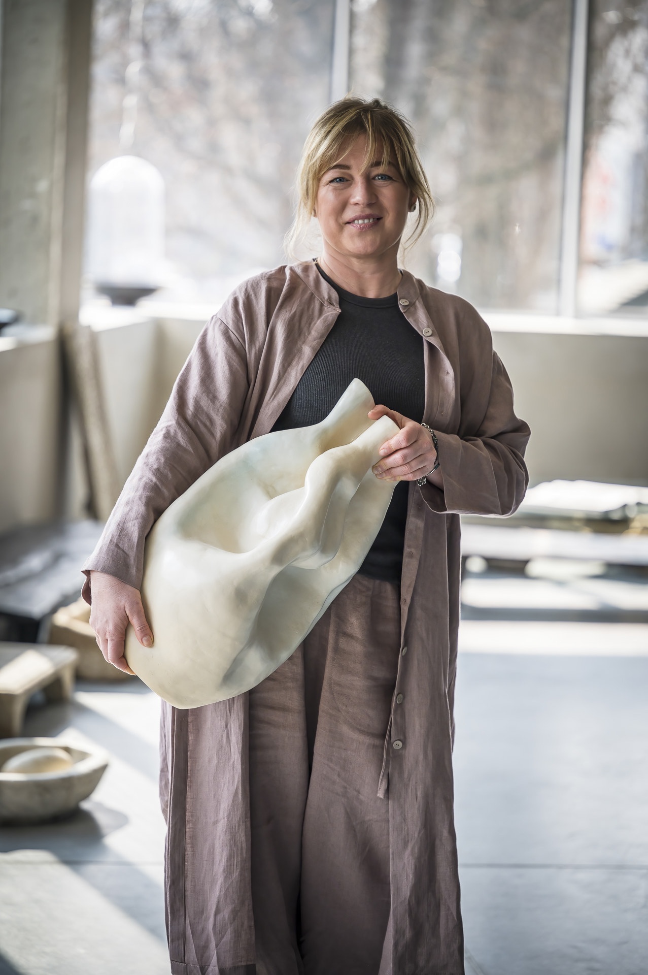 Już wtedy ćwiczyłam uważność, choć nie miałam o tym pojęcia. To było naturalne i wypływało z potrzeby odpoczynku czy zwolnienia tempa życia. Teraz słowo „uważność” jest bardzo rozchwytywane, ludzie odkrywają je i celebrują. I bardzo dobrze, bo pęd życia jest tak duży, że zapominamy o priorytetach. Po latach, będąc już dorosłą kobietą, sama musiałam się tego „zwalniania życia” ponownie uczyć, a glina jest najlepszą nauczycielką powrotu do źródeł. Wydobyta z ziemi, znana od tysięcy lat, niezmienna… Bardzo lubię jej kolor: piaskowy, antracytowy, czerwony - glina występuje w wielu kolorach i odcieniach, dlatego rzadko szkliwię moje prace, lubię ich naturalny kolor i chropowatość. Działam spontanicznie, najbardziej kocham formy organiczne, o miękkich, delikatnych kształtach. Tak powstała moja praca dyplomowa pt.: „Pamięć oddechu”. Przedmiotem pracy są obłe, sporych rozmiarów bryły organiczne, symbolizujące ludzki oddech - największy prezent od natury, wciąż tak bardzo niedoceniany.