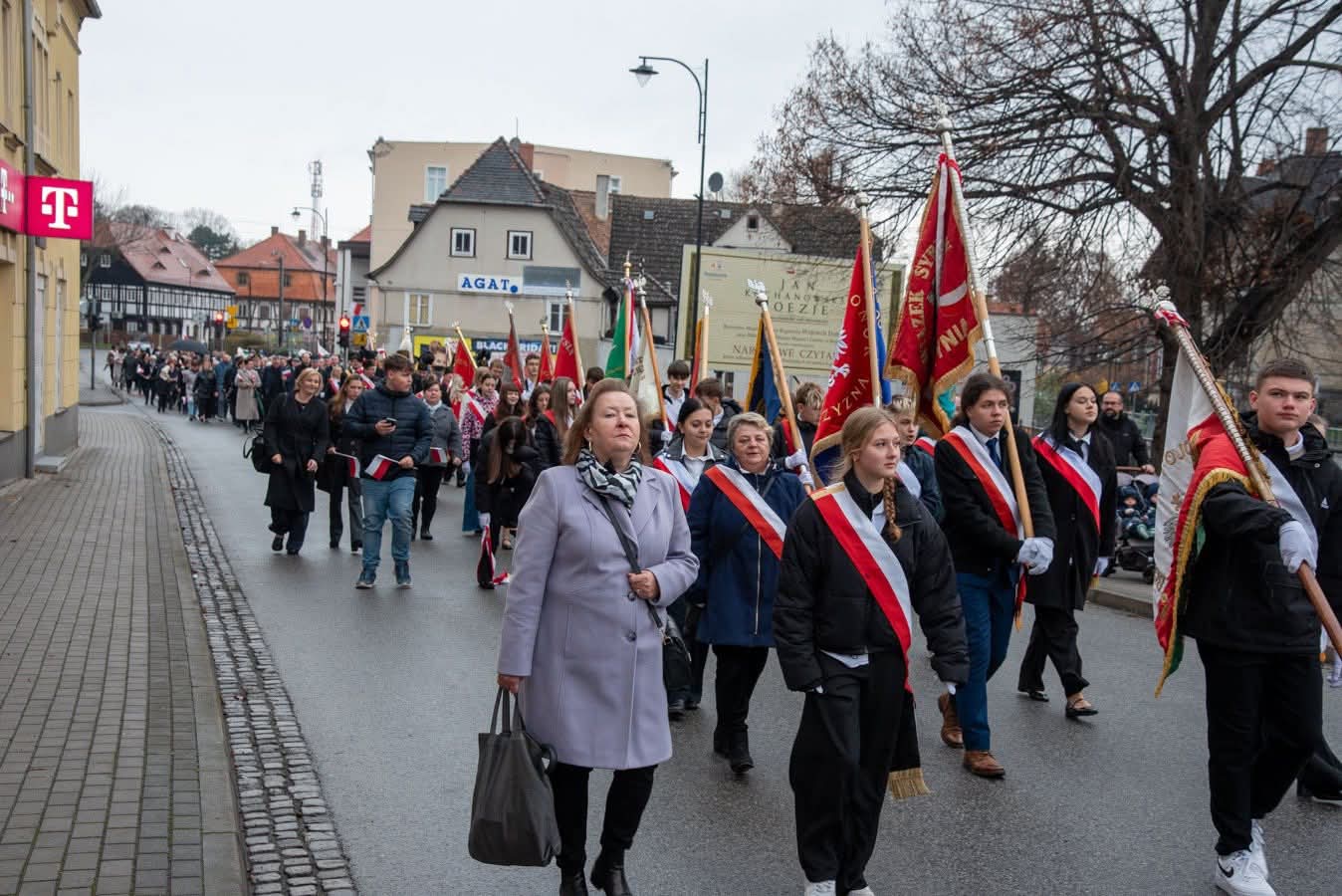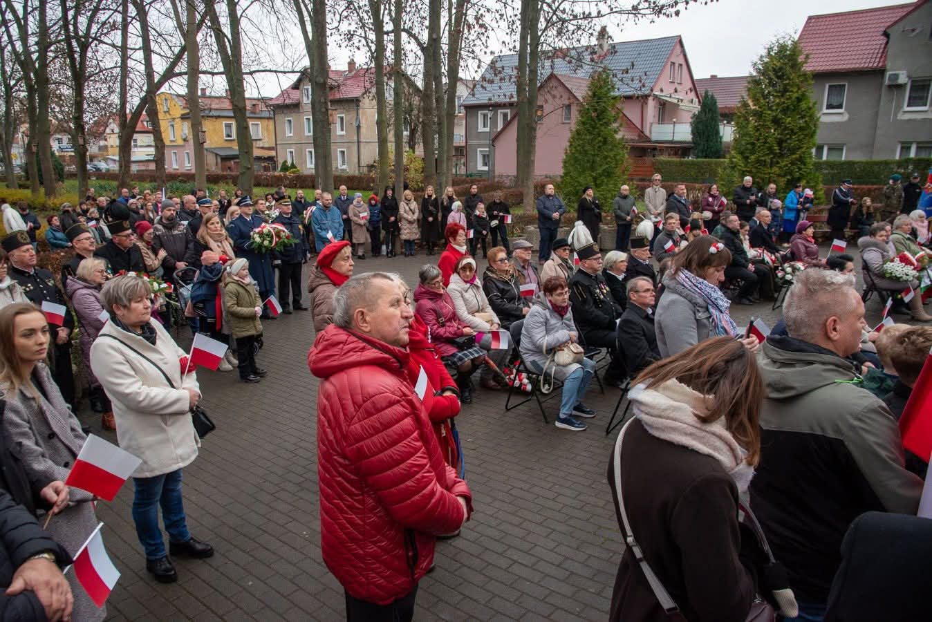 Po nabożeństwie, w uroczystym przemarszu, na czele z pocztami sztandarowymi i przy akompaniamencie Orkiestry Reprezentacyjnej Elektrowni Turów, uczestnicy przeszli do Parku im. Jana Pawła II. Tam, podczas głównej, patriotycznej uroczystości, oddano hołd wszystkim, dzięki którym możemy cieszyć się wolnością.