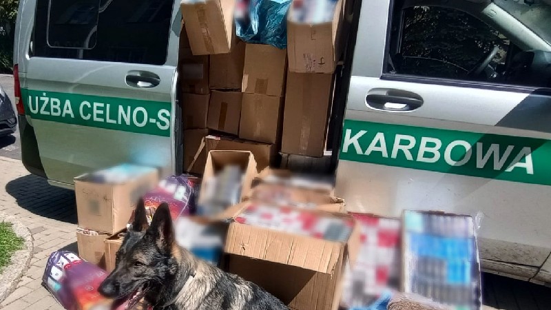 Funkcjonariusze Służby Celno-Skarbowej z Dolnośląskiego Urzędu Celno-Skarbowego we Wrocławiu przeprowadzili kontrole na targowisku w Sieniawce. Podczas działań funkcjonariusze znaleźli ponad 15 kg tytoniu oraz 257 tys. szt. papierosów bez polskich znaków akcyzy. Funkcjonariuszy wspomagał pies służbowy Ina.