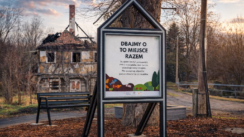 W ramach prac zainstalowano infrastrukturę wykonaną w lokalnej Eko-pracowni. Wykorzystano do tego materiały innowacyjne: ławkę, eko-grządkę oraz tablicę informacyjną wykonano z desek powstałych z granulatu z recyklingu tworzyw sztucznych. Działanie to ma na celu promowanie gospodarki obiegu zamkniętego i eliminację problemu nielegalnego wywozu śmieci.