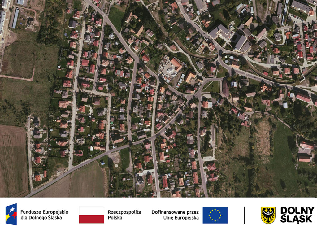 Precyzyjna ortofotomapa (5 cm): Niezwykle dokładne zdjęcia lotnicze pozwalają na wykonywanie pomiarów działek czy budynków z dokładnością do kilku centymetrów, bez wychodzenia z domu.