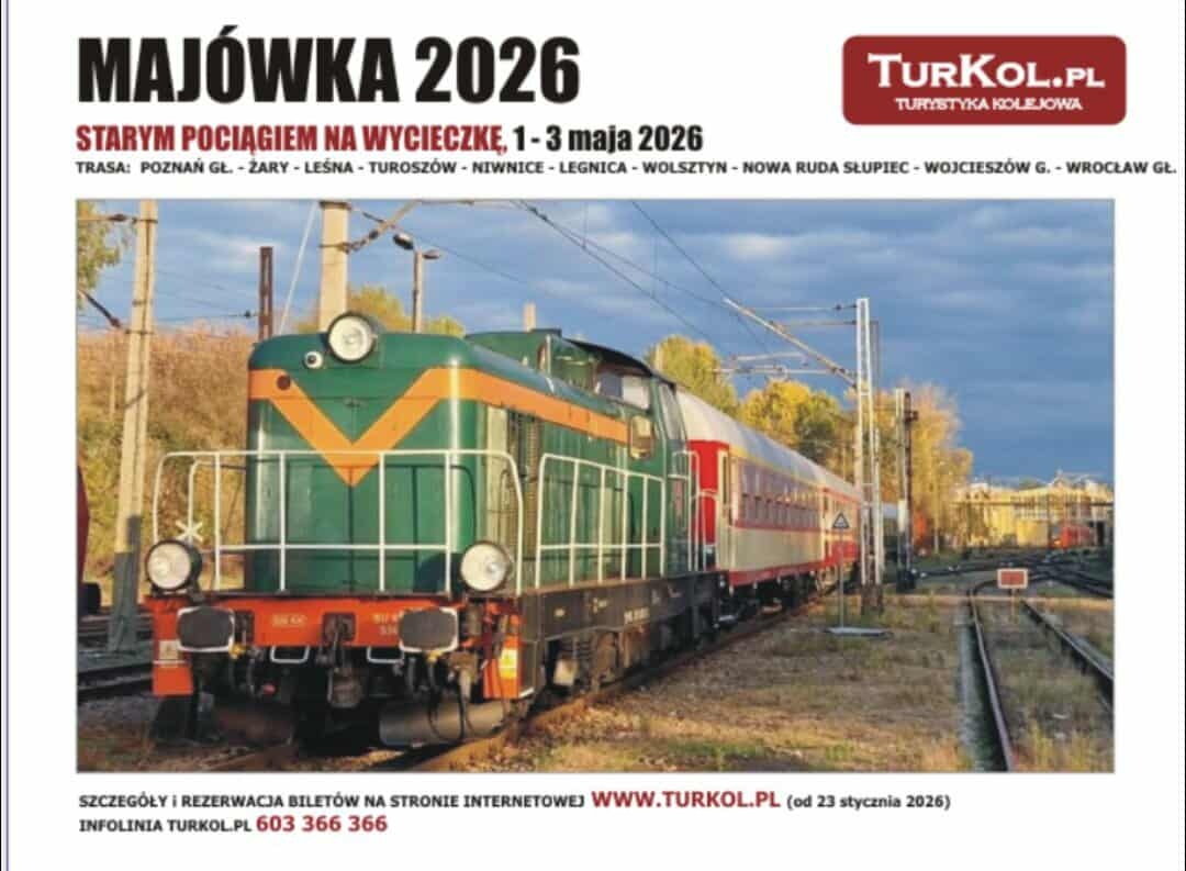 Nadchodząca majówka 2026 roku zapowiada się wyjątkowo dla mieszkańców naszego regionu oraz pasjonatów kolejnictwa. W ramach ogólnopolskiej oferty Turystyki Kolejowej TurKol.pl, na lokalne tory wyjedzie specjalny pociąg turystyczny „Kombinat”. Największą sensacją jest fakt, że skład pasażerski zawita na stację w Turoszowie, która na co dzień pozostaje zamknięta dla regularnego ruchu podróżnych.