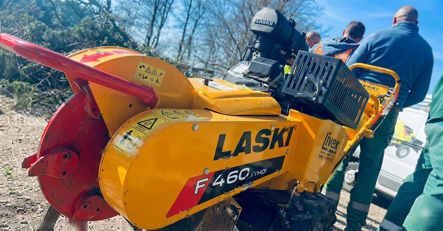 „Frezarka do pni to niezwykle przydatne urządzenie, które umożliwia dokładne usuwanie pozostałości po ściętych drzewach. Rozdrabnia pień nawet poniżej poziomu gruntu, dzięki czemu teren staje się równy i estetyczny” – informuje Gminne Przedsiębiorstwo Oczyszczania.