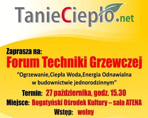 W Bogatyńskim Ośrodku Kultury odbędzie się Forum Techniki Grzewczej "Ogrzewanie, Ciepła Woda, Energia Odnawialna w budownictwie jednorodzinnym"TanieCieplo.net zaprasza na Forum Techniki Grzewczej "Ogrzewanie, Ciepła Woda, Energia Odnawialna w budownictwie jednorodzinnym". Forum odbędzie się w sali Atena (Bogatyński Ośrodek Kultury) w terminie 27 października, godz. 15.30. Wstęp wolny.