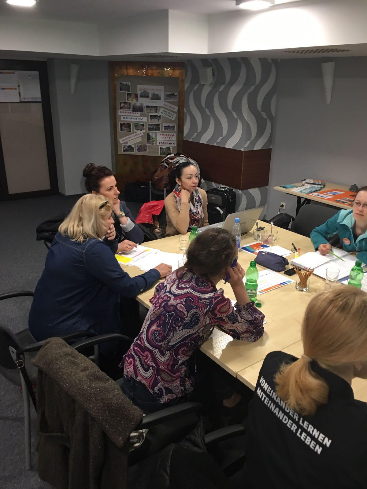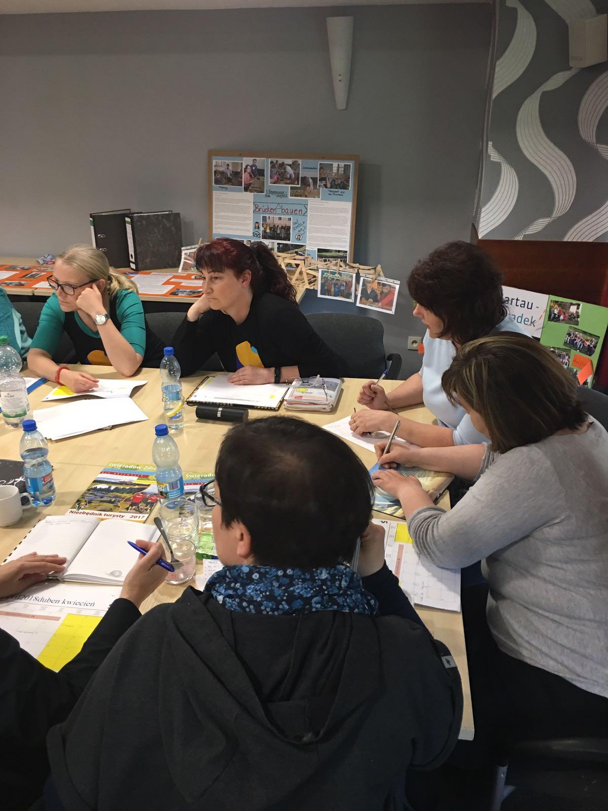 Następnie wszyscy uczestniczy odbyli trinacjonalny kurs językowy. Tematem spotkania były również zmiany polityczne w Polsce, Czechach i Niemcach związane z oświatą. Drugiego dnia w małych grupach mieszanych kadra polska i niemiecka zaplanowała spotkania, tematy i działania na nadchodzący rok szkolny 2017/2018.