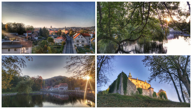 Ciekawiej było z drugiej strony budynku, w którym miałem wynajęty mój tymczasowy domicyl. Mały staw, a nad nim wzgórze, na szczycie którego znajduje się wspomniany zamek. Nie miałem czasu żeby go zwiedzić, ale pod względem estetycznym z pewnością jeden z najładniejszych, jakie widziałem na żywo. Turyści chodzą tutaj zwiedzać, miejscowi zbierać borówki, a ja przyjechałem pić.