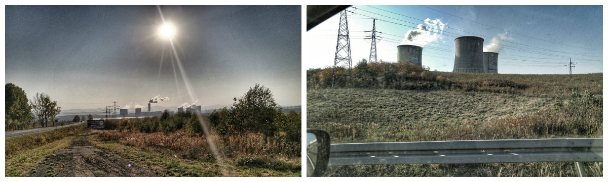 Pomyślałby kto – jest bogactwo, będzie przepych! Nic bardziej mylnego. Od strony Zgorzelca dojeżdża się w kierunku południowym szeroką, równiutką szosą asfaltową aż do samej elektrowni. Ta, gdy tylko wyłania się zza jednego z licznych wzgórz tej mocno pofałdowanej części Łużyc, na tle łańcuchów górskich po czeskiej stronie granicy, wręcz przytłacza. Jest ogromna, wyraźnie większa od tej w Łaziskach. Jeszcze mocniejsze, acz i bardziej posępne wrażenie robi patrząc na nią od drugiej strony, z drogi prowadzącej z Bogatyni do niemieckiej Żytawy. Nie mogłem się zatrzymać w celu zrobienia zdjęcia, ale uwierzcie mi – widok z góry na kopalnię odkrywkową, która w każdym miejscu na Ziemi jest doskonałym synonimem kompletnej dewastacji krajobrazu, otóż widok na tę wyjałowioną do samej skały ziemię, nad którą góruje ogromna, ale w relacji do kopalni jednak mała elektrownia, jest mocno przygnębiający. Elektrownia z tej perspektywy jawi się wręcz jako potwór, który dosłownie wyjada ziemię wokoło, i to do cna, bo nawet o zgliszczach nie może być w tym miejscu mowy.