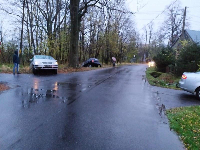 Jak się okazało, w jadącą Skodę, którą kierowała mieszkanka Bogatyni, uderzył po wymuszeniu pierwszeństwa, wyjeżdżając z drogi podporządkowanej VW Sharan, kierowany przez 53-letniego mieszkańca powiatu jeleniogórskiego. Uderzona w bok Skoda obróciła się na jezdni po czym zjechała do rowu uderzając w znak drogowy. Skodą podróżowały trzy osoby, w tym 4-letnie dziecko. Wszystkim, a szczególnie dziecku udzielono pomocy i schronienia w prywatnym pojeździe policjanta do czasu przybycia służb ratunkowych.