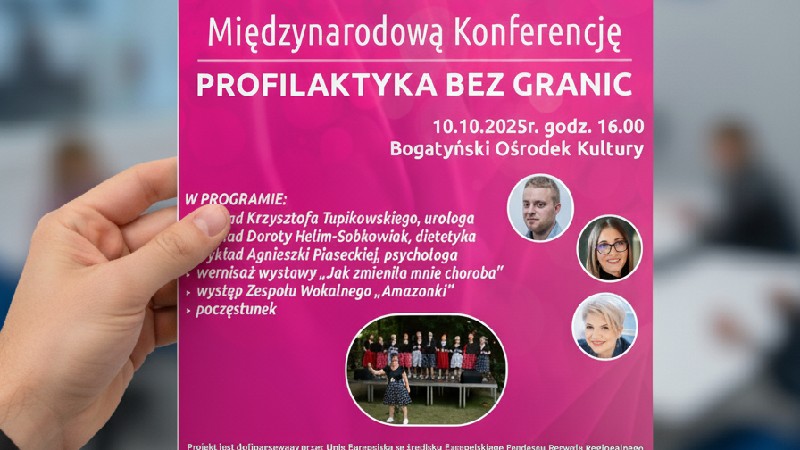 W Bogatyńskim Ośrodku Kultury 10 października 2025 roku, o godzinie 16:00, odbędzie się ważna Międzynarodowa Konferencja pod hasłem „PROFILAKTYKA BEZ GRANIC”. Wydarzenie, zorganizowane wspólnie przez Burmistrza Miasta i Gminy Bogatynia oraz Bogatyńskie Stowarzyszenie „Amazonki”, ma na celu promocję zdrowia i znaczenia wczesnej diagnostyki. Konferencja jest częścią większego projektu, współfinansowanego przez Unię Europejską ze środków Europejskiego Funduszu Rozwoju Regionalnego w ramach Funduszu Małych Projektów Polska – Saksonia 2021-2027.