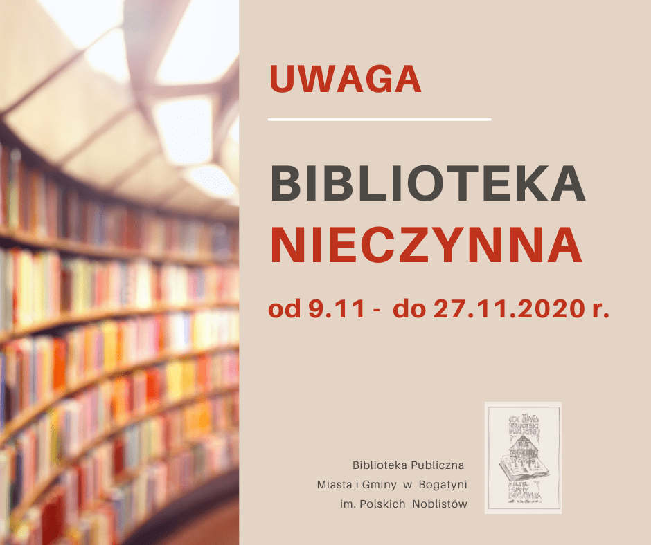 Biblioteka będzie nieczynna od 9.11 do 29.11.2020 r.