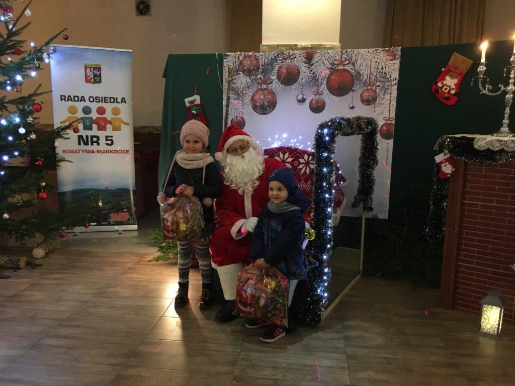 Podczas spotkania dzieci ze Świętym Mikołajem przyjechał z wizytą pełniący funkcję Burmistrza Miasta i Gminy Bogatynia, Pan Wojciech Dobrołowicz, który przywiózł cukierki dla maluchów i gwiazdę betlejemską dla rady osiedla.