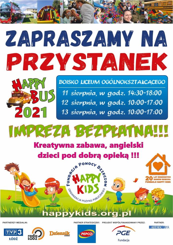 Burmistrz Miasta i Gminy Bogatynia oraz Fundacja Happy Kids zapraszają na świetną zabawę pod szyldem „Happy Bus”. Jest to letni projekt Fundacji, który jest organizowany od 2010 roku. W 2020 roku swoim zasięgiem objął 131 przystanków, na których bawiło 11 000 dzieci wraz ze swoimi rodzicami i starszymi członkami rodzin.