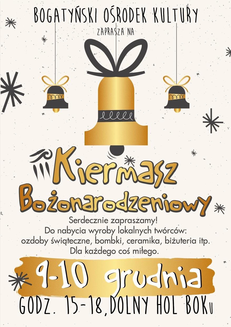 Serdecznie zapraszamy osoby indywidualne, instytucje, organizacje oraz stowarzyszenia do udziału w Kiermaszu Bożonarodzeniowym, który odbędzie się w Bogatyńskim Ośrodku Kultury 9 i 10 grudnia 2021 r. w godz. 15.00 – 18.00.