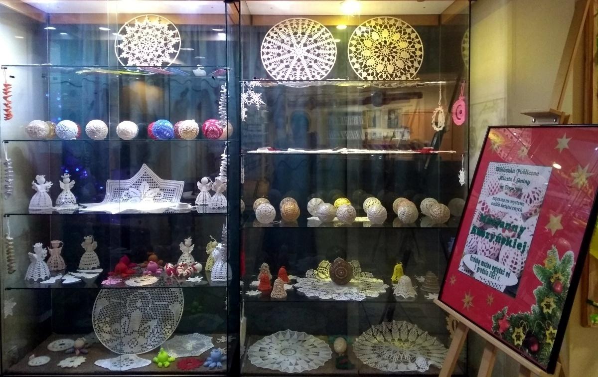 W Bibliotece Publicznej w Bogatyni można zobaczyć kolejną wystawę ozdób świątecznych Mariany Suszyńskiej. Są to wyroby szydełkowe w formie bombek choinkowych, aniołków, bałwanków i płatków śniegu.
