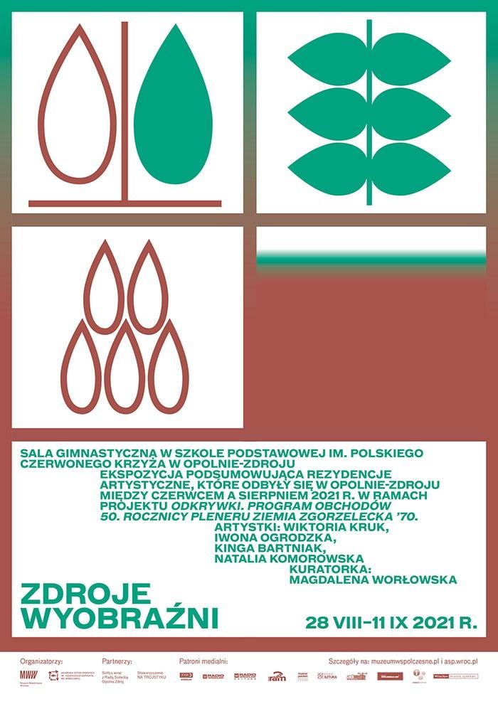 WYSTAWA PODSUMOWUJĄCA REZYDENCJE ARTYSTYCZNE W OPOLNIE-ZDROJU 28.8.21–11.9.21 wystawę można oglądać od 28 sierpnia do 11 września w poniedziałki, środy i piątki w godz. 14.30–17.00 w sali gimnastycznej Szkoły Podstawowej im. Polskiego Czerwonego Krzyża w Opolnie-Zdroju, ul. Narutowicza 7.