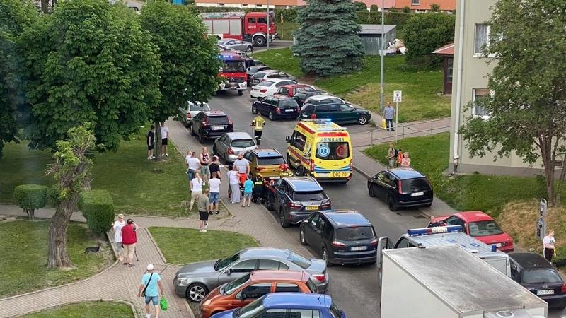 Niegroźne potrącenie dziecka na ul. Orła Białego. Interweniowała policja, pogotowie ratunkowe oraz dwie jednostki straży pożarnej.