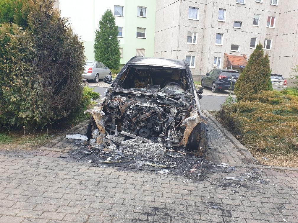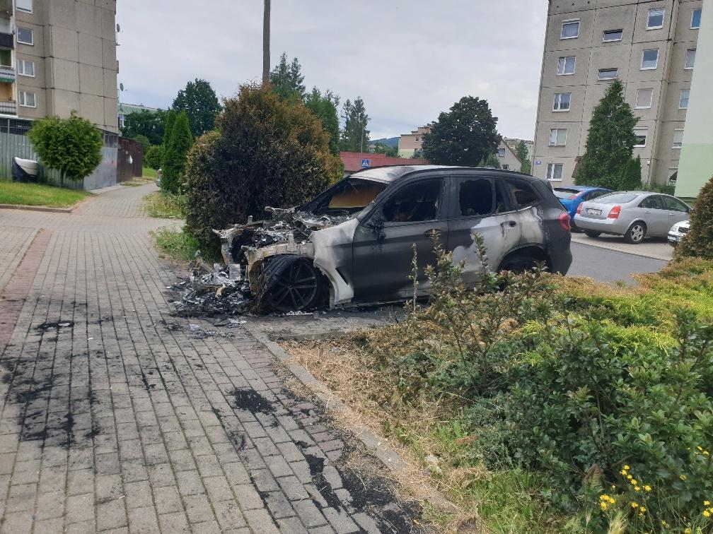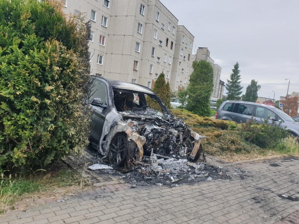 Spalone bmw na "Serbinowie", na parkingu przy ulicy Styki.