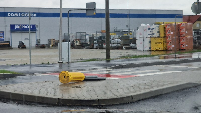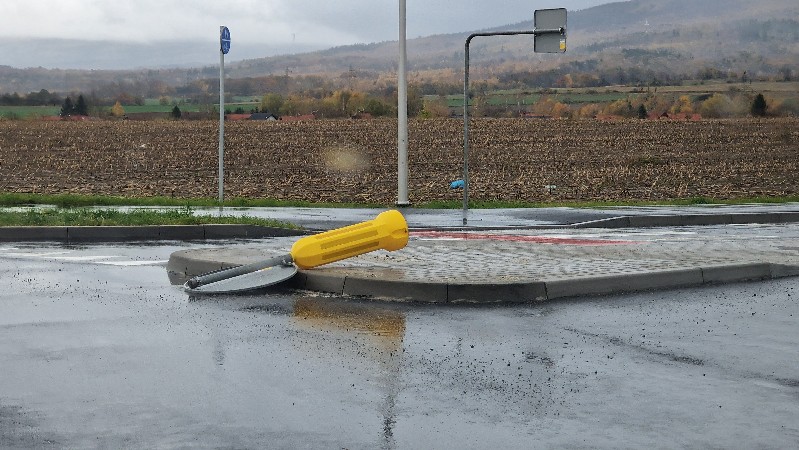 Ktoś powyrywał znaki drogowe przy nowym rondzie.