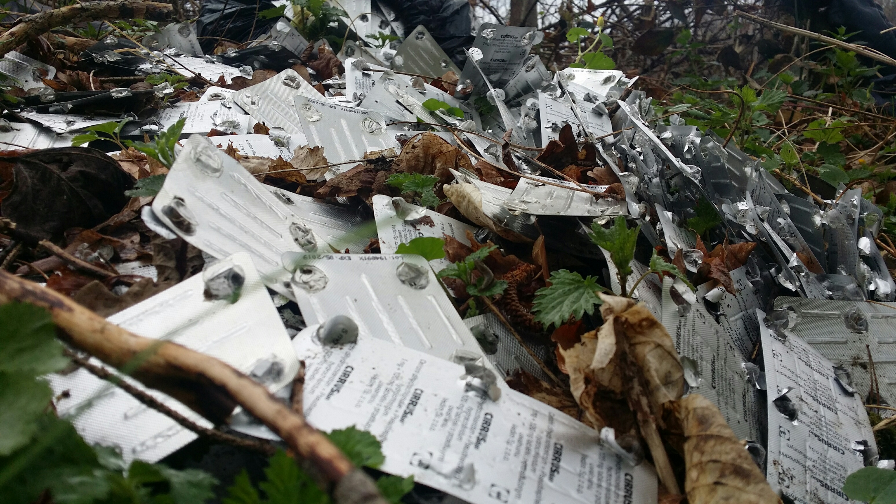 Podjechał samochód i bez krępacji wyrzucił worki pełne wyłuskanych blistrów. Przy działkach na drodze do Czech. Po co komu tyle tabletek na katar? Pytanie zostawiam retorycznym...